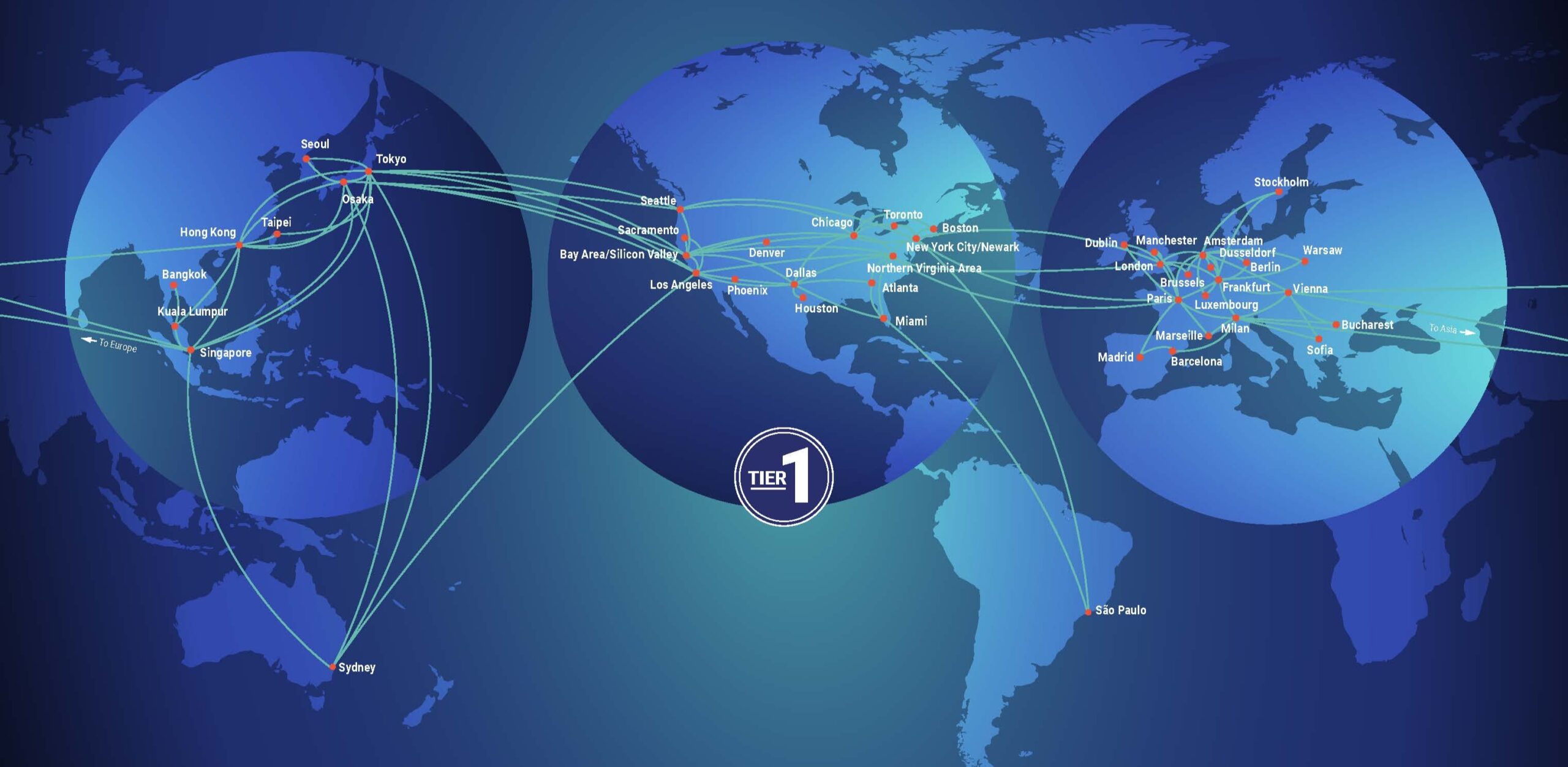 Our dual-stack Tier-1 Global IP Network spans the Americas, Asia, Europe and Oceania on a single autonomous system number (AS2914). We operate the largest Transpacific network and our capacity is always growing. View our network map to see our PoPs and markets around the world.